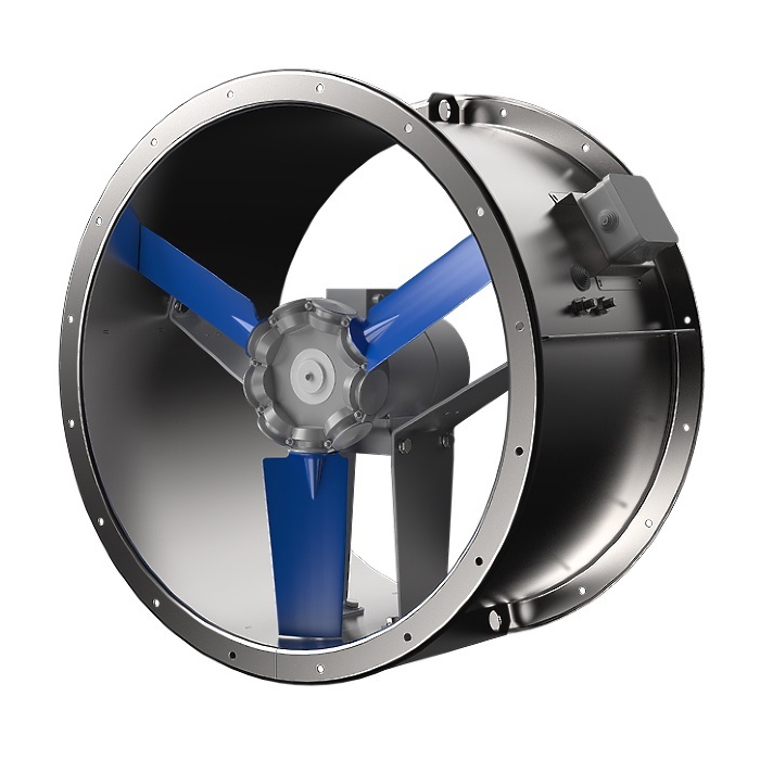 осевой вентилятор, максимальный расход воздуха 9 300 куб. м/ч, частота вращения 3 000 1/мин, максимальный располагаемый напор 618 Па, присоединительный размер 400 мм, материал корпуса: сталь, монтаж: в воздуховод, степень защиты: IPX4