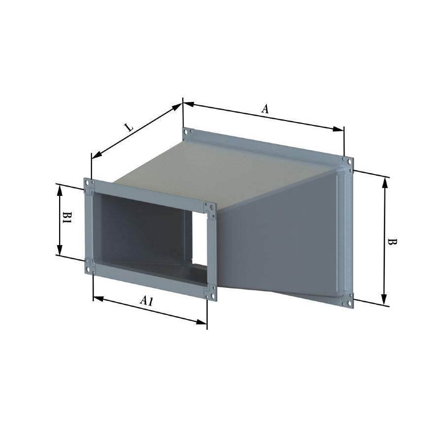 Переход прямоугольный ГиперВент с 1100х1100 на 1000х1000 длина 300 (Ф30-Ф30)